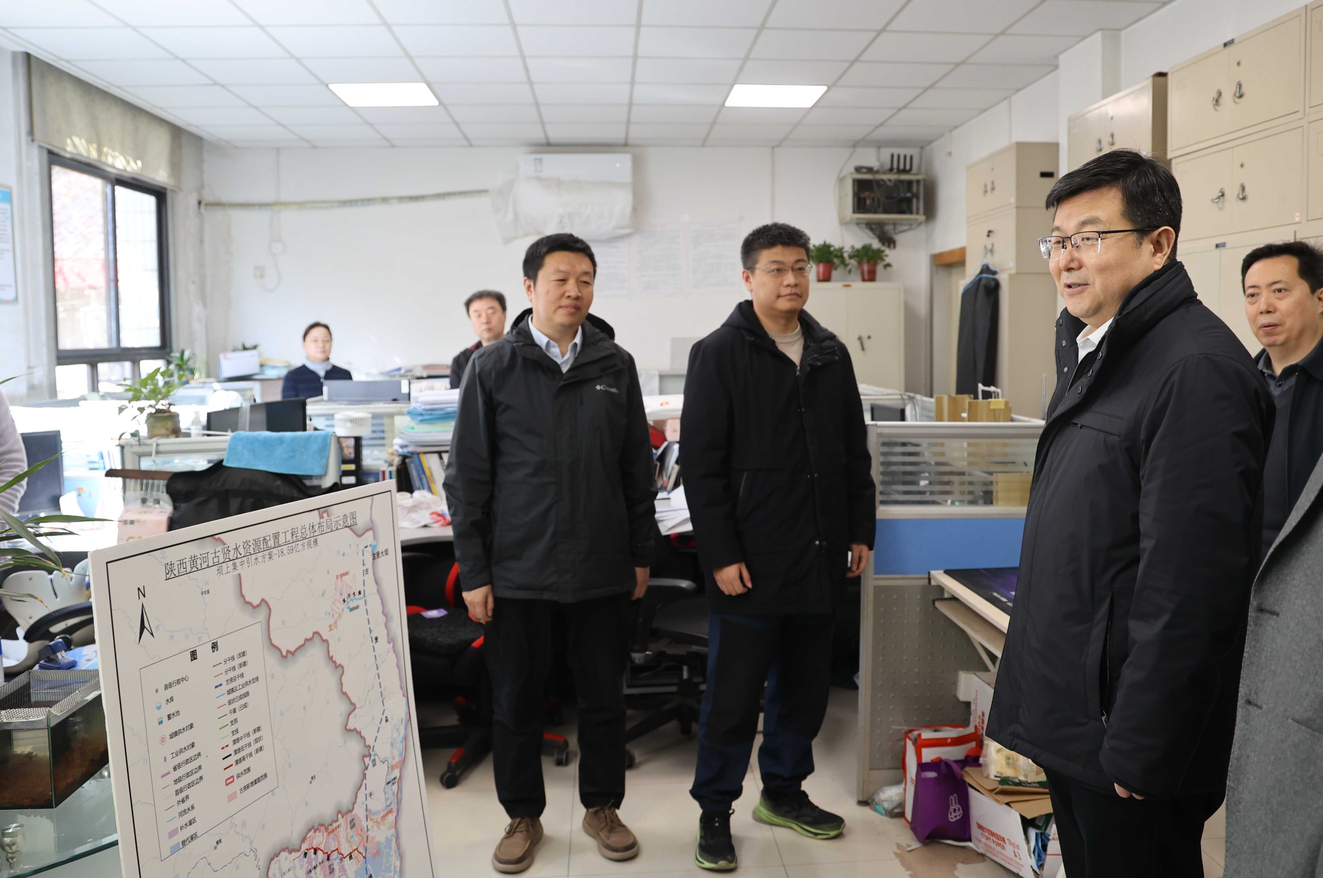 郑维国一行先后来到省水利电力勘测设计研究院(集团)公司所属水利工程分院、规划研究分院,详细了解“十五五”水安全保障规划编制和黄河古贤水资源配置、宝鸡峡灌区现代化改造、东庄水利枢纽供水等重大工程前期进展情况,对集团公司广大干部职工的辛勤付出表示感谢,并致以新年的祝福和问候。他强调,要切实增强使命感、责任感和紧迫感,深入研究国家政策,系统比选设计方案,精准测算工程投资,全力以赴加快进度,力争重大工程早日开工建设,提升我省水安全保障能力。